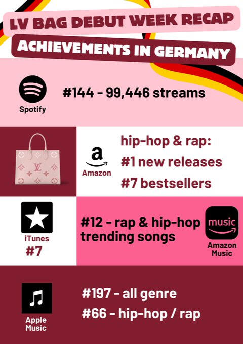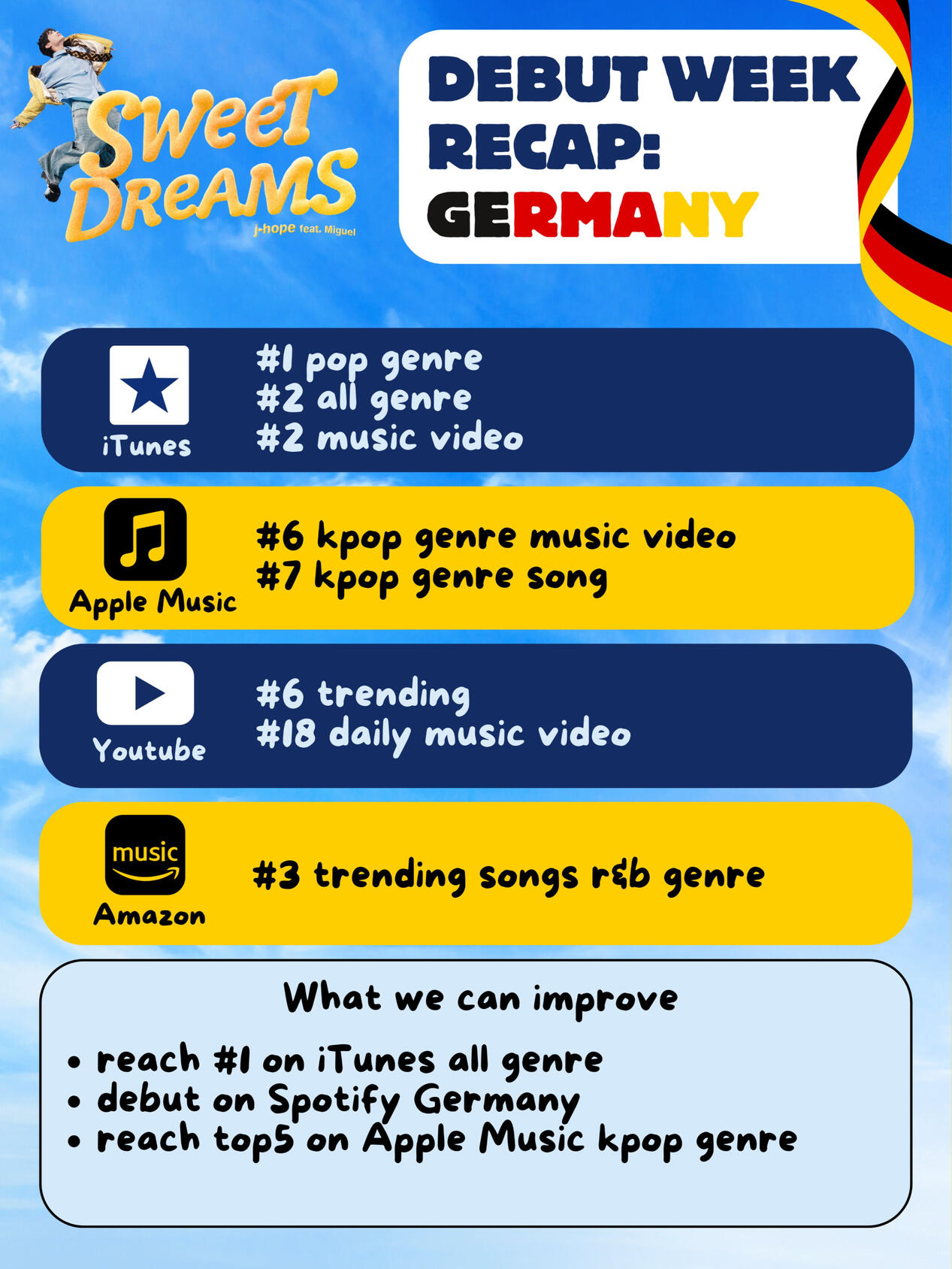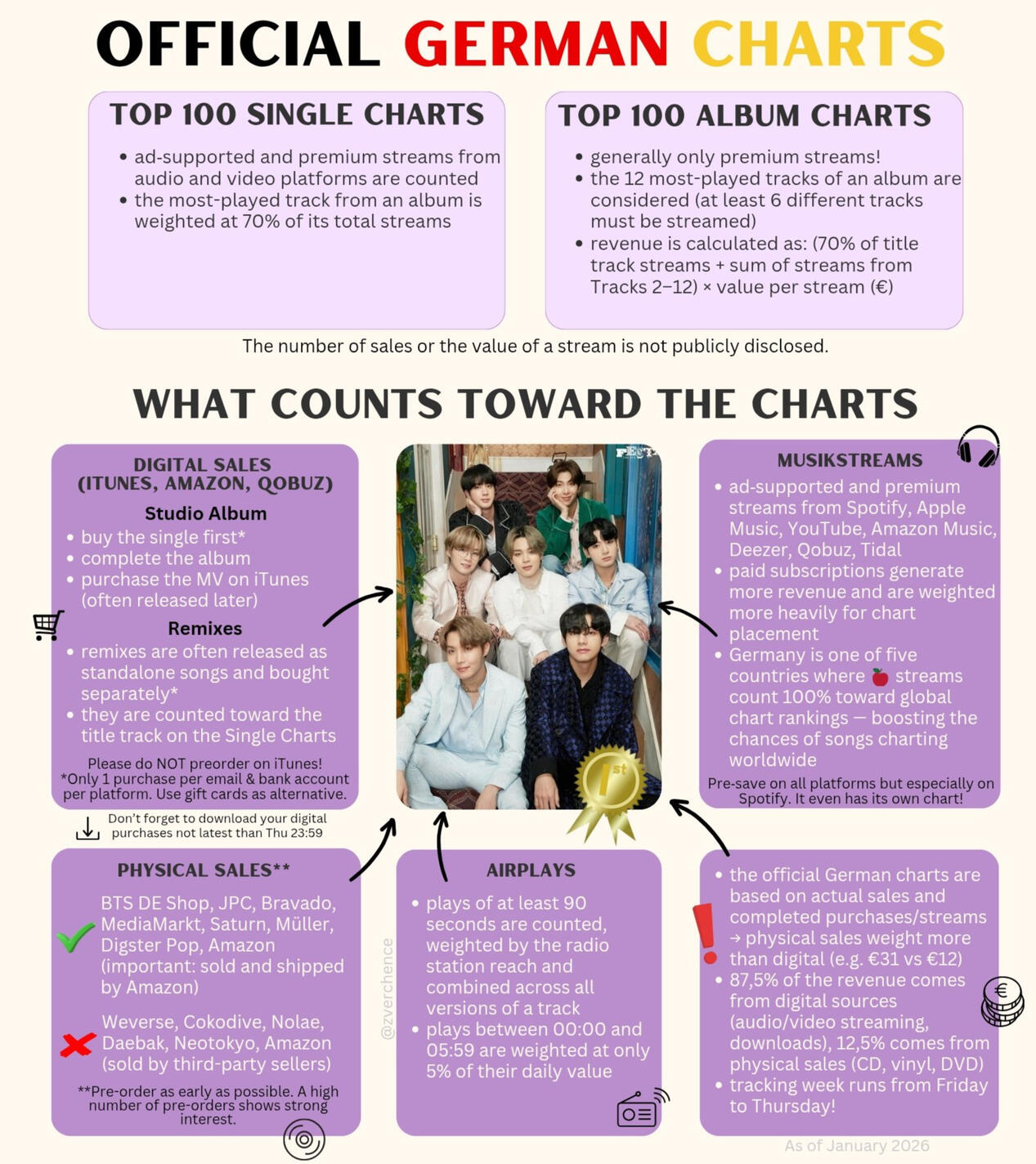 AM bietet mehrere Genre Charts. Unser Ziel ist es, zuerst in K‑Pop zu charten, dann in Pop und schließlich im All‑Genre Chart 🎯All‑Genre heißt: Bangtan chartet neben den Weltstars. Genau da gehören sie hin 💫Deutschland ist eines von fünf Ländern, in denen Streams zu 100 % in die weltweite Chartwertung einfließen. Das stärkt die Chancen von Songs auf weltweite Platzierungen.💜 Holt euch die AM‑Probeabos (falls ihr AM noch nicht nutzt) und lasst uns unser Bestes geben 💜Vorteile von AM: