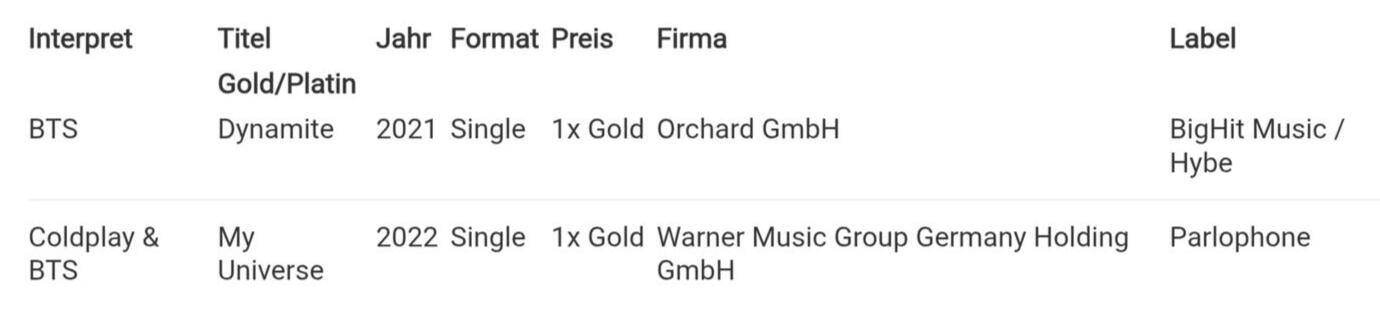 | Spotify | Daily Top Artists | 13.03. | #146 BTS (-17) | 907 days |